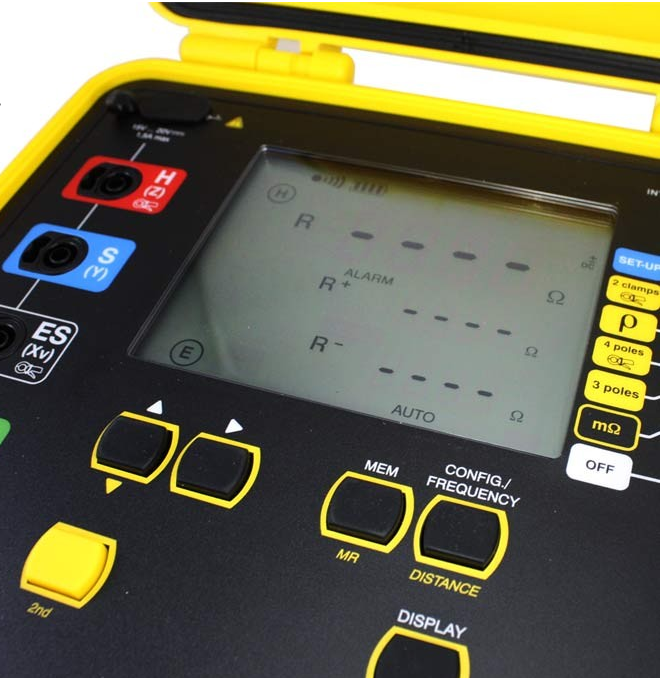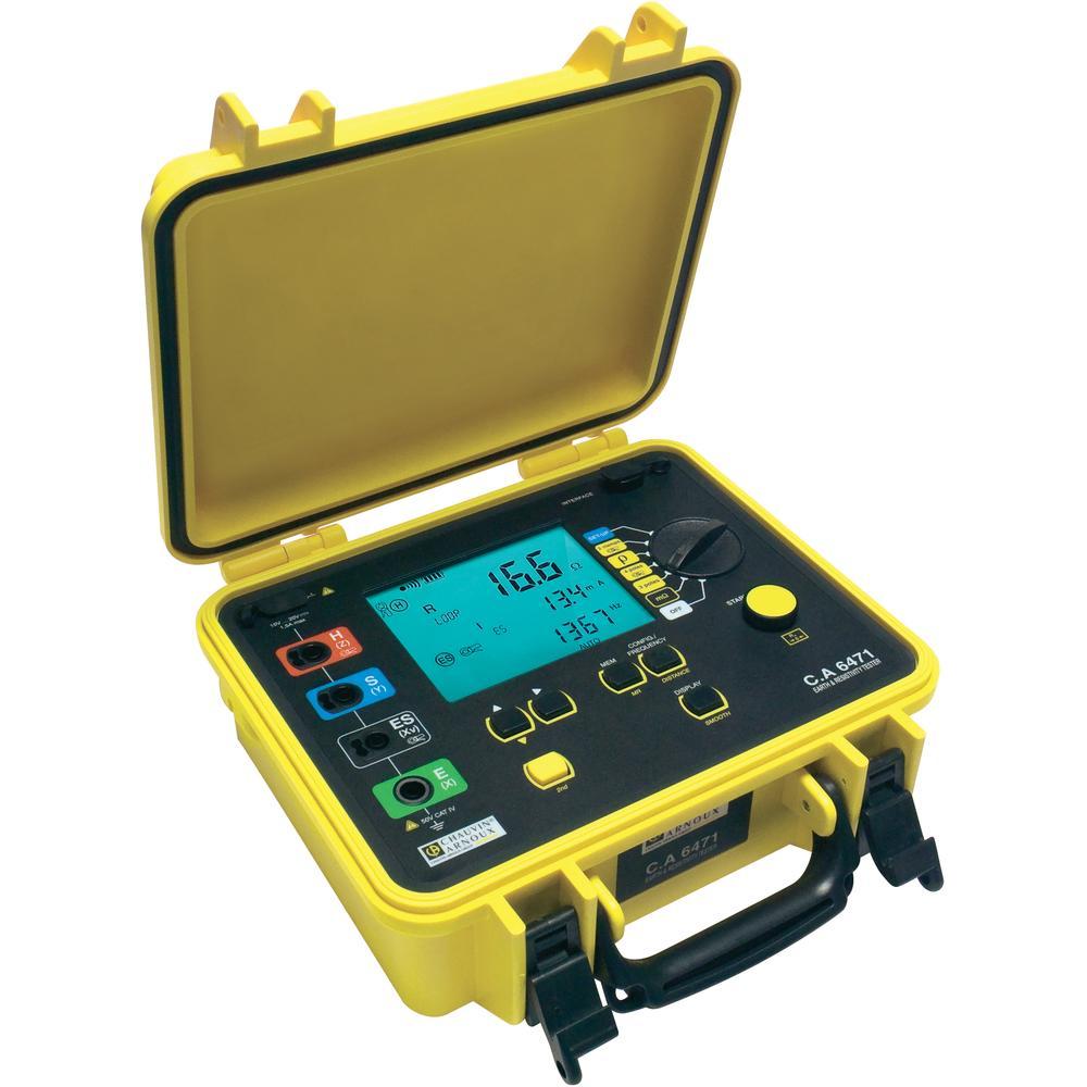 – en medida de resistividad del terreno, la programación de las distancias utilizadas para la medida permite al CA6471 el cálculo automático de r por los métodos Wenner o Schlumberger.