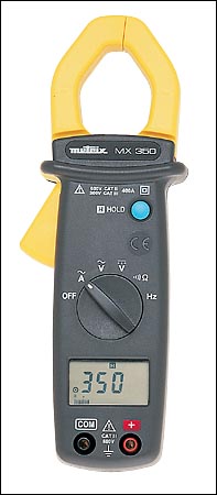Dotada de funciones esenciales (tensión ca y cc, corriente ca, Ohm, frecuencia y continuidad), la pinza multimétrica MX 350 ofrece una excelente toma en mano y una visualización muy cómoda. Permite medir tanto las frecuencias de corriente (hasta 10 kHz) y de tensión (hasta 1 MHz).