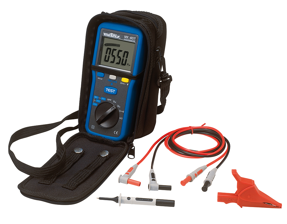 El MX 407 es un controlador de aislamiento con multímetro, equipado con un display de 4000 cuentas con retroiluminación.