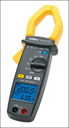 En modo multímetro, la pinza MX 670 mide tensiones (AC y DC) y resistencias, asi como la comprobación de diodos y continuidad. Además, también determina las frecuencias de tensiones y corrientes.