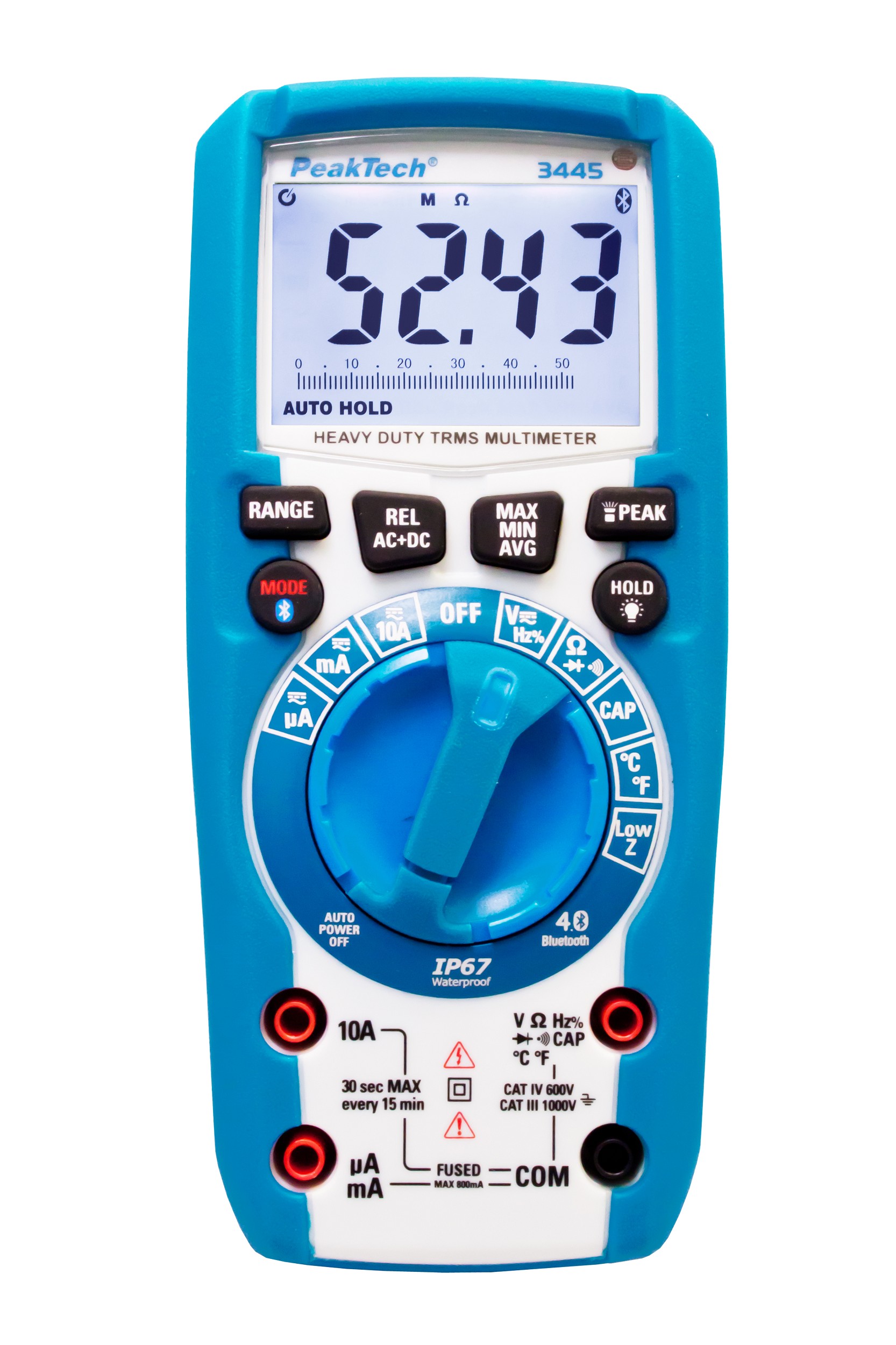 El nuevo modelo P3445 de PeakTech es un multímetro de gran precisión gracias a sus 3 5/6 dígitos, duro y resistente para el trabajo en campo y resistente al agua y al polvo.