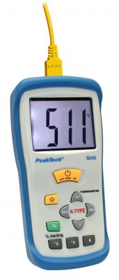Este práctico instrumento de medición de temperatura de un solo canal para termopares tipo K con pantalla LCD grande retroiluminada de 3 ½ dígitos y varias funciones de medición tal como retención de datos y valor máximo es universalmente utilizable en las áreas de educación, refrigeración y aire acondicionado, preparación de alimentos / almacenamiento, agricultura, química e industrial-gama.